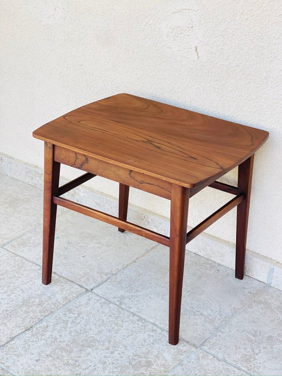 Superbe table d’appoint, console en noyer, présentant un élégant design scandinave des années 1960.