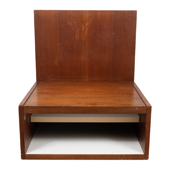 Modèle EU11 Table de nuit de Cees Braakman. La table de nuit est équipée d'un miroir pliable et d'une étagère en dessous. La table de nuit doit être fixée au mur. Parfaite comme table de chevet ou meuble flottant.