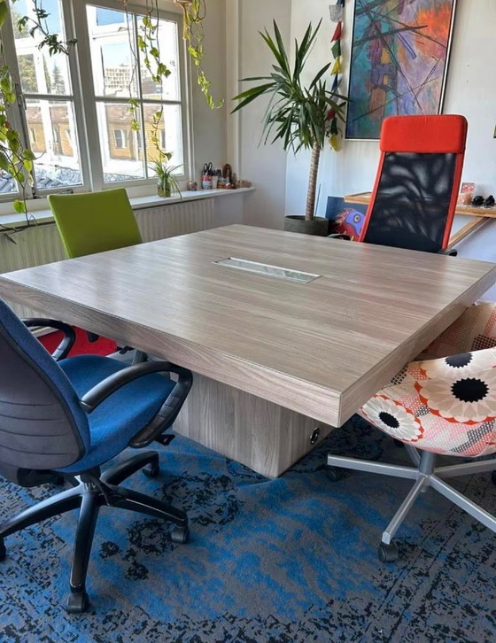 Découvrez l'équilibre parfait entre élégance et fonctionnalité avec cette table de conférence design exclusive. Idéale pour les bureaux modernes, cette table offre une allure raffinée qui sublimera toute salle de réunion.