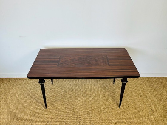 Table de salle à manger art déco en ébène de macassar et marqueterie, 1940
