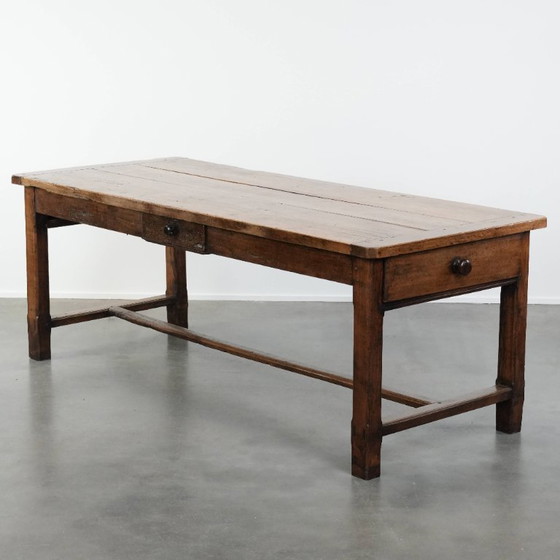 Nous sommes convaincus qu'aucun intérieur n'est complet sans une belle table de ferme ancienne ! Cette magnifique table de ferme française date du XVIIIe siècle. Elle regorge de détails d'origine et s'harmonise parfaitement avec des chaises de salle à manger anciennes comme modernes. Elle est vendue avec ses trois tiroirs, offrant un espace de rangement généreux. Du fait de son âge et de nombreuses années d'utilisation soignée, elle présente quelques marques d'usure normales, qui n'enlèvent rien à sa beauté, bien au contraire ! Sa structure est en bon état et elle est prête à être utilisée immédiatement. Sera-t-elle bientôt chez vous ?