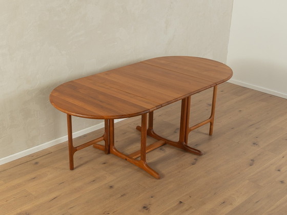 Table de salle à manger extensible classique des années 1960 au design scandinave. Structure et plateau en teck massif de haute qualité avec deux rallonges. Fabriquée au Danemark, fabricant : Gudme Møbelfabrik (marque sous le plateau).