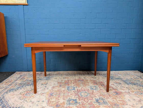 Magnifique table de salle à manger du milieu du siècle dernier. Cette table a été conçue par Kai Winding et produite par la célèbre société Slagelse Møbelværk. La table est marquée.