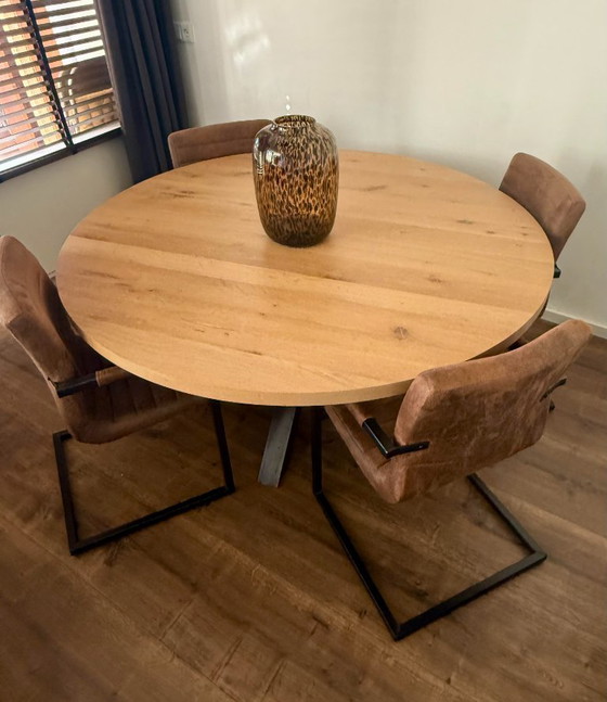 Table de salle à manger ronde en chêne avec piètement en matrice