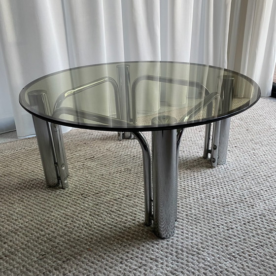 Replongez dans l'ambiance des années 70 avec cette table basse vintage qui deviendra sans aucun doute la pièce maîtresse de votre salon. Son élégant plateau en verre et ses pieds en métal brillant lui confèrent un charme intemporel, à la fois chic et fonctionnel.