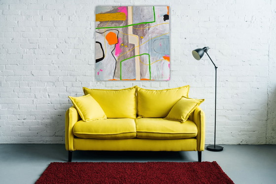 Découvrez l'énergie vibrante du tableau « Échos d'avril dans l'espace » de Marc Neys. Cette œuvre abstraite capture l'essence d'un printemps dynamique grâce à ses couleurs vives et ses lignes fluides.