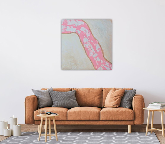 Ce magnifique tableau, intitulé « La nuit a quelque chose de spécial », est un chef-d'œuvre de Marc Neys qui apporte une présence à la fois subtile et saisissante à toute pièce. Les formes abstraites et le délicat équilibre des tons roses et crème créent une atmosphère sereine et contemplative, invitant à une profonde réflexion.