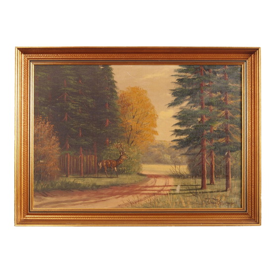 Tableau "Le cerf au bord de la route", design scandinave, années 1970
