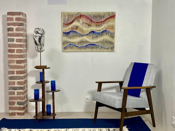 Tableau sculpture textiles effet de vague et de relief obtenu par la magie du plissage. Réf : Akiko
