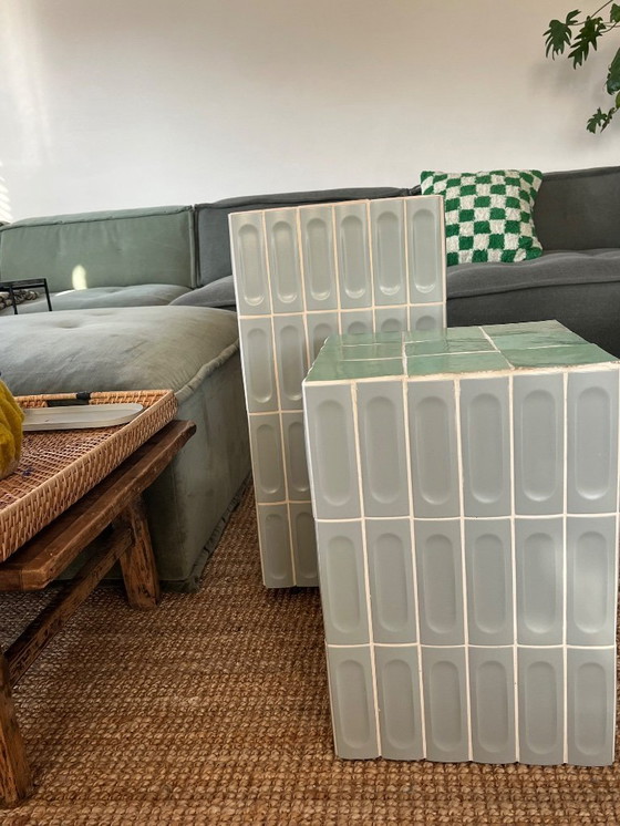 Découvrez le raffinement de ces tables d'appoint uniques, revêtues de magnifiques carreaux qui apportent une touche d'élégance et de style à votre intérieur. Fonctionnelles et véritables œuvres d'art, elles raviront les amateurs de design en quête d'une pièce d'exception.
