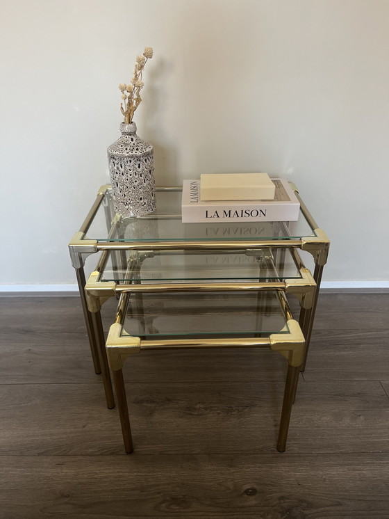 Ces petites tables d'appoint vintage sont adorables ! 🥰 Leurs pieds sont en laiton, seuls les coins sont en plastique. Le plateau en verre est en excellent état !