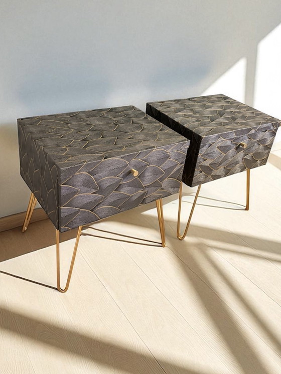 Ce magnifique ensemble de deux meubles vintage arbore un nouveau design et un imprimé unique. Un véritable atout charme ! Parfait dans une entrée, un salon ou une chambre. Pratique, discret et élégant !