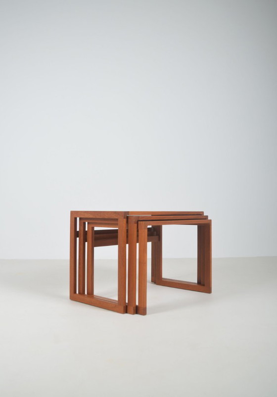 Ensemble de trois tables gigognes danoises, conçues par Kai Kristiansen dans les années 1960. Elles sont en teck et proviennent de la manufacture Vildbjerg Møbelfabrik.