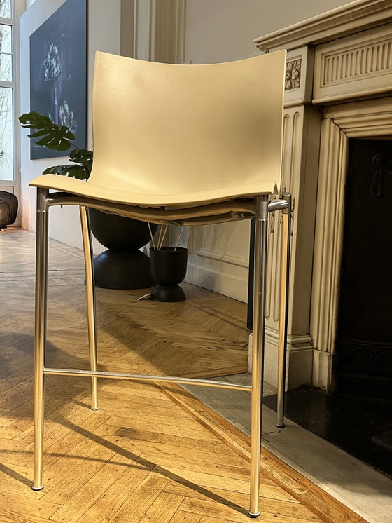 Conçu par le designer emblématique Philippe Starck, le tabouret de bar design Caméléon de Driade allie sophistication et fonctionnalité dans un design intemporel. Le tabouret de bar présente une élégante couleur crème, ce qui lui permet de s'intégrer sans effort dans n'importe quel intérieur. Bien que quelques signes d'utilisation soient visibles, cela ajoute du caractère à la pièce et souligne la qualité et la durabilité du design. Une occasion unique de faire entrer un classique du design dans votre maison !