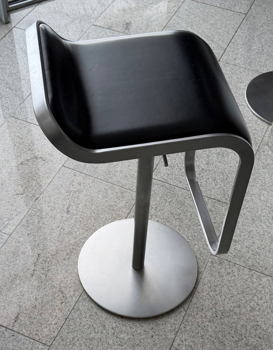 Tabouret de bar La Palma en acier inoxydable et cuir noir (lot de 4)