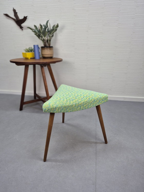 Tabouret triangulaire vintage avec revêtement en tissu neuf, de style danois.