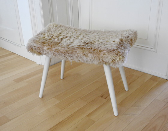 Tabouret vintage avec fourrure Teddy - coiffeuse ou pouf