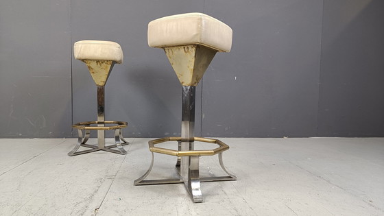 Tabourets de bar en laiton et chrome des années 70, lot de 2, 1970S