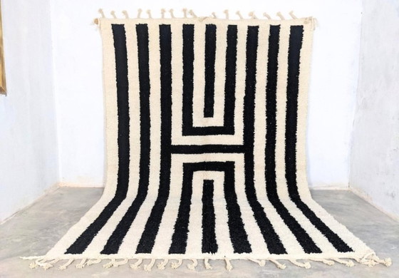 Plongez dans l'élégance intemporelle de ce véritable tapis berbère en laine, mesurant généreusement 250 cm x 150 cm. Cette pièce exquise témoigne d'un savoir-faire traditionnel et arbore un motif géométrique noir et blanc saisissant qui s'harmonise avec tous les intérieurs raffinés.