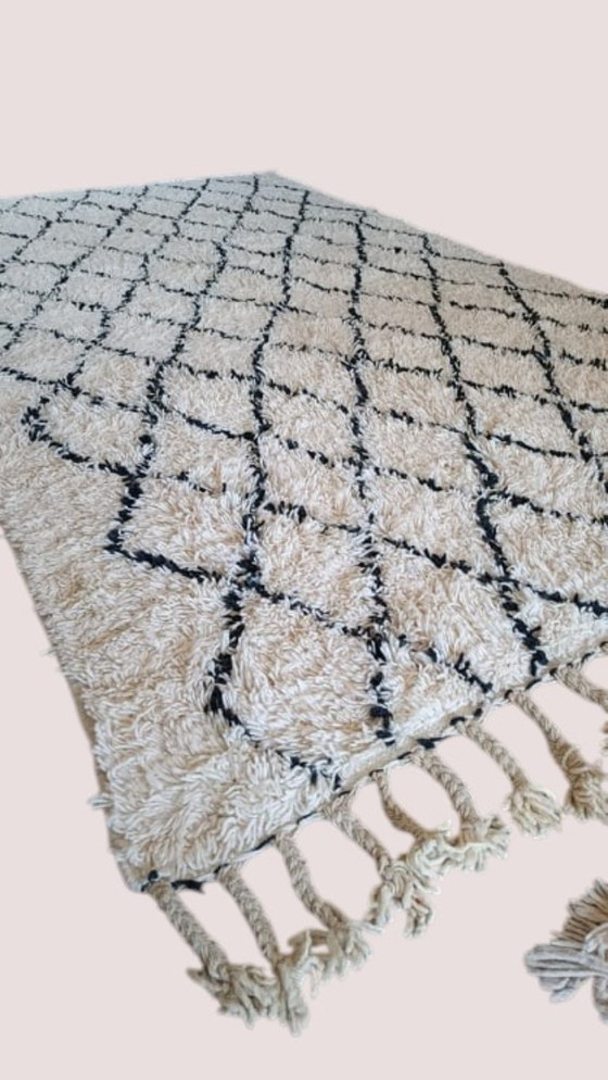 Chaque tapis est unique, fabriqué à partir de laine de mouton 100 % naturelle - douce, résistante et totalement durable. Avec son design contemporain, ce tapis apporte une touche de fraîcheur au design berbère classique. Les motifs et les formes apportent de l'harmonie et font en sorte que ce tapis attire inconsciemment l'attention de chaque visiteur.
