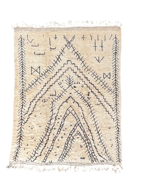 Tapis berbère marocain luxueux en laine 250x350 cm – Tapis berbère blanc et noir – Tapis marocain authentique