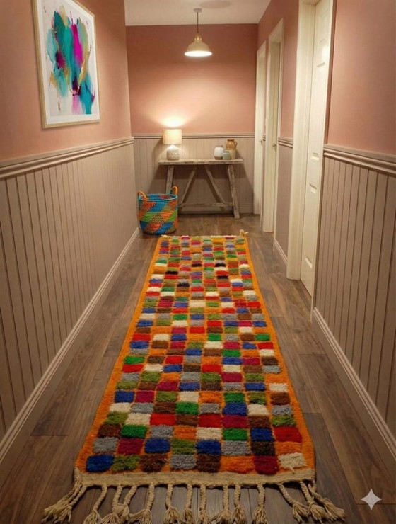 Plongez votre intérieur dans une explosion de couleurs et de richesse culturelle avec ce magnifique tapis berbère multicolore. Confectionné artisanalement en laine de première qualité, ce tapis témoigne d'un savoir-faire traditionnel et d'une expression artistique raffinée. Ses couleurs captivantes illumineront n'importe quelle pièce.