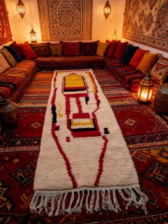 Tapis de couloir tradionnel bérbere réference Mrirt Écru