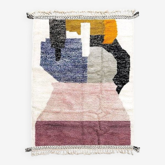 Découvrez l'élégance intemporelle de ce tapis marocain en laine, mesurant 250 cm par 150 cm. Ce chef-d'œuvre artisanal présente un motif abstrait aux couleurs vibrantes, ajoutant une touche artistique à tout intérieur.