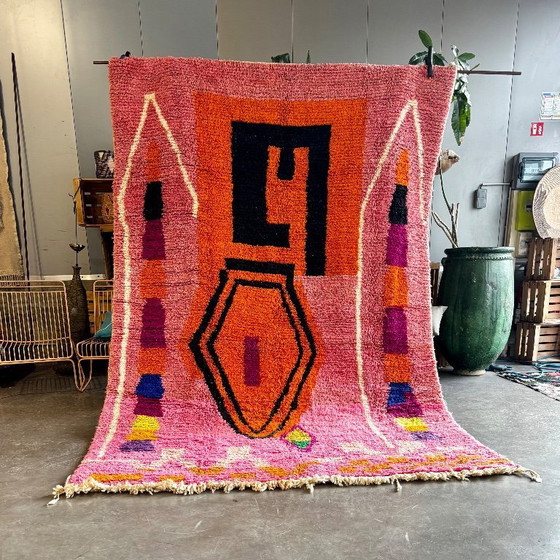 Tapis marocain rose fait main 200x310 cm, tapis doux et moelleux, décoration bohème