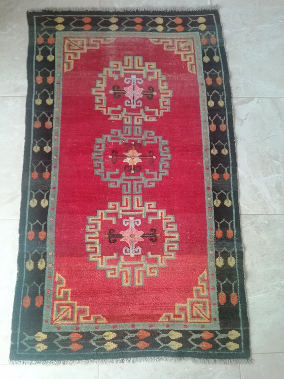 Tapis tibétain Khaden assis/dormant en pure laine, datant des années 1920-1940.