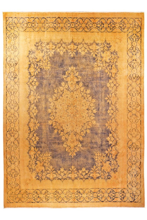Nos tapis vintage, que nous trouvons en Iran, proviennent de tapis persans usagés qui continuent leur voyage après avoir été transformés et redessinés. Les designers basés en Iran recyclent les anciens tapis persans faits main comme matière première pour leur art. Chaque tapis est soigneusement sélectionné et passe par un processus unique de lavage et de neutralisation des couleurs. Au cours d'un processus créatif, des parties du velours sont enlevées ou réduites afin de créer un nouveau design. Le tapis est ensuite recoloré dans de nouvelles couleurs et de nouveaux motifs fascinants. Le résultat est une œuvre d'art individuelle unique et moderne. Bien entendu, ces tapis vintage, anciens et usagés, sont dans un état correspondant à ce qui fait partie du produit.