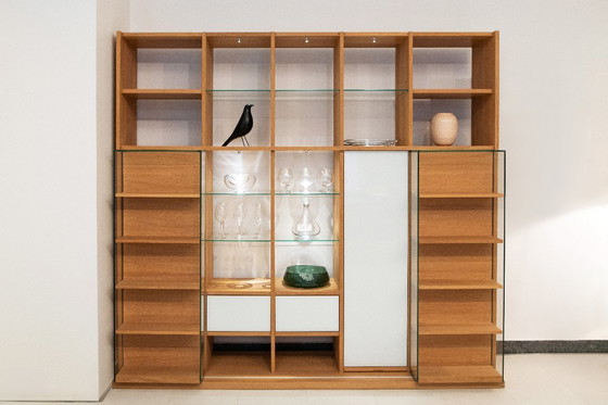 Team7, Système d'étagères Cubus en bois massif avec éclairage LED
