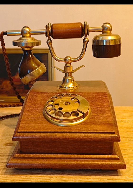 Téléphone Fixe Vintage Style Rétro Bois et Laiton - PTT Rembrandt KS