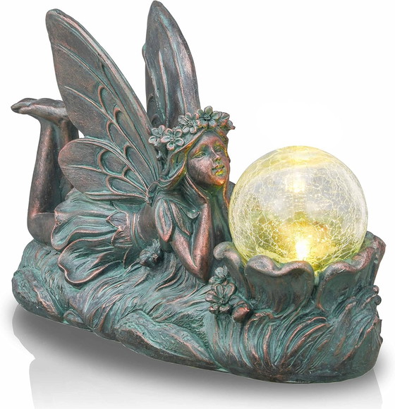 TERESA'S COLLECTIONS Grande décoration de jardin de fées en bronze, avec lumières solaires, statues de jardin d'ange en