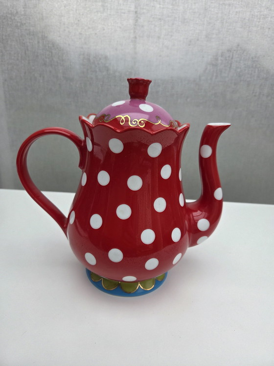 Cette charmante théière et son pot à lait Oilily à pois apporteront une touche de couleur à votre service de table. Avec son motif à pois rouges et blancs et ses élégantes finitions dorées, cette théière insufflera une note bohème à votre cuisine.