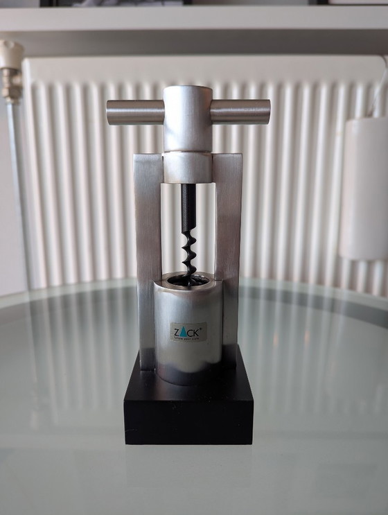 Tire-bouchon élégant et robuste de la marque allemande ZACK, réputée pour son design minimaliste et ses finitions de haute qualité. Cette pièce rare, issue de la collection « Follow Your Style », est fabriquée en acier inoxydable brossé.