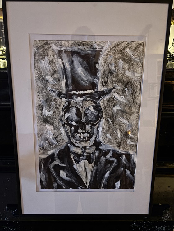 Oeuvre d'art de Max Moszkowicz. Matériau : Marqueur noir, charbon, peinture à l'huile. Hauteur : 50 cm / 40 cm