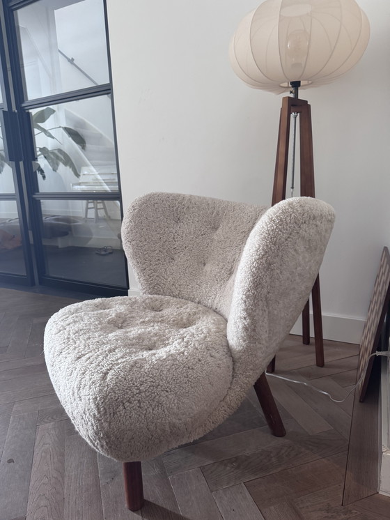 &Tradition petit fauteuil Petra VB1 peau de mouton clair de lune