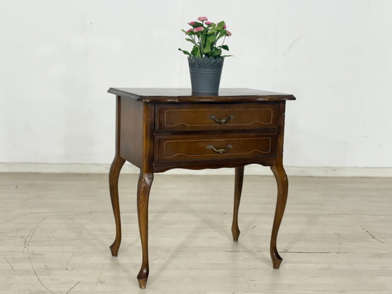 À vendre : une magnifique commode/table de chevet vintage Chippendale à deux tiroirs, en bon état.