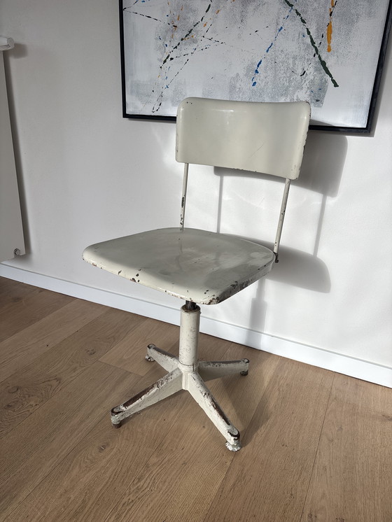 Remontez le temps avec cette chaise de bureau industrielle vintage signée Tubax, une pièce qui incarne le charme brut du design du milieu du siècle. Sa structure métallique robuste et sa finition blanche intemporelle en font un meuble polyvalent pour tout espace de travail ou bureau à domicile.