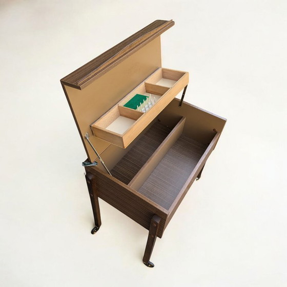Une rareté ! Armoire à roulettes de couture vintage des années 70 - dessus ouvrant, utilisation polyvalente, design Mid Century
