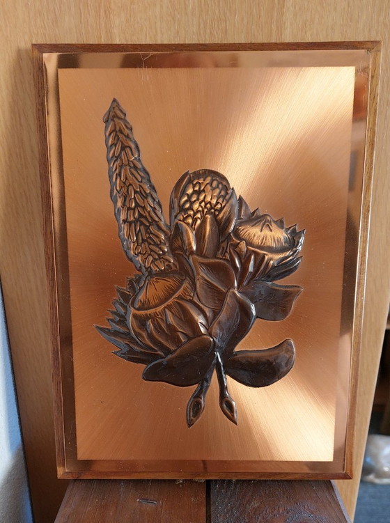 Une œuvre en cuivre de Dennis Thomson. Actif en Rhodésie dans les années 1960 et 1970, il créait des plaques de cuivre en trois dimensions représentant la faune sauvage.
