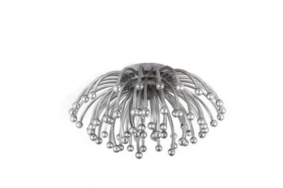 Valenti Luce pour Studio Tetrarch. Lustre, ou suspension, modèle « Pistillo » à une lumière centrale, en ABS de couleur argenté. Travail italien réalisé dans les années 1970. Dimensions : H 32 x D 60 cm Référence : LS6104456M