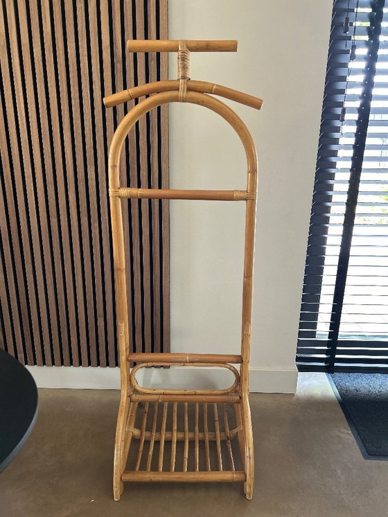 Découvrez le charme de ce valet de chambre vintage en bambou, alliant style et fonctionnalité à la perfection. Il apporte une touche rétro à votre chambre ou dressing et permet de ranger vos vêtements avec soin. Le bambou, matériau durable, dégage une chaleur naturelle et s'intègre harmonieusement à tous les intérieurs. Son design vintage confère du caractère et un style unique à votre espace, attirant tous les regards. Ne manquez pas cette occasion d'inviter un morceau de nostalgie chez vous.