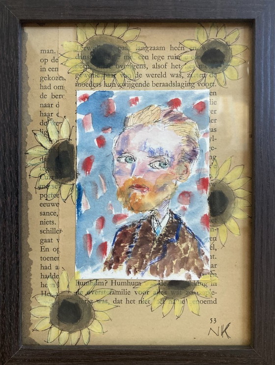 Cette petite aquarelle & fine liner fait partie d'une série dédiée à Vincent Van Gogh, le peintre hollandais qui a vécu et peint ce chef-d'œuvre (que j'ai recréé avec ma propre touche) en France (tout en faisant le contraire !) Les tournesols peints sur de vieux documents hollandais sont un hommage à Vincent. Le tableau lui-même mesure 17,5 x 12,5 cm et 20 x 15 cm avec le cadre. Germain Henneka est un artiste et conservateur français vivant à Amsterdam et inscrit à la Chambre de commerce. Il possède également une cote officielle Akoun (sur demande). Il vend ses œuvres depuis 2014. Exposition de 2025 : Galerie Victor F - Paris (23 Jan - 5 Mars) Galerie Berenstraat - Amsterdam ( 6 semaines) Galerie Androuet Paris (28 Avril/4 Mai) Expo4art - Paris (26 - 29 Mai) Galerie Prinsengracht - Amsterdam (7-13 Oct) etc...