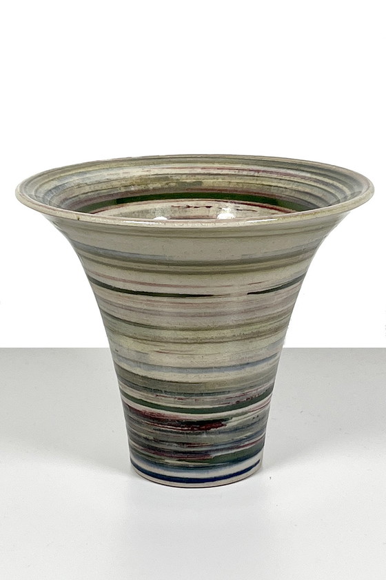 Vase « arc-en-ciel » de Mobach, créé par Piet Knepper vers 1990. L'origine de son nom nous paraît évidente. Un vase gai et élégant aux couleurs chatoyantes. Il est en bon état.