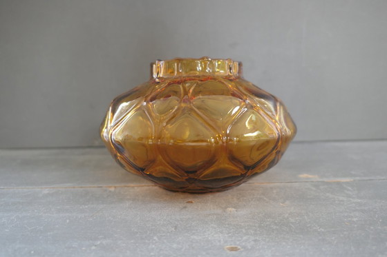 Vase Art Déco en verre ambré Verextrafort belge. Diamètre 21 cm, hauteur 13 cm. En excellent état. D'autres vases en verre ambré sont disponibles dans d'autres annonces.
