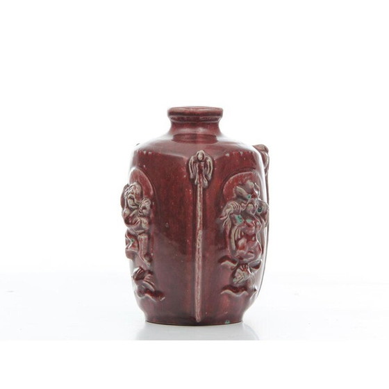 Céramique scandinave, vase de Bode Willumsen pour Royal Copenhagen, trois visages et motifs anthropomorphes sur le thème de la mer et de la pêche. Glace rouge sang. Signé et daté de 1958.
