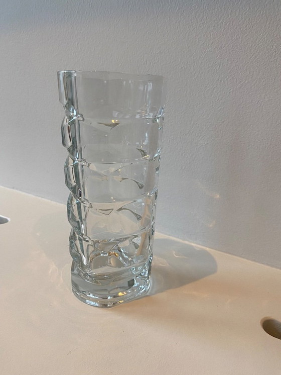 Un magnifique vase vintage français de la marque Luminarc, de style Art déco des années 1970. Fabriqué en verre clair et robuste, il présente un design unique. En parfait état. Une véritable pièce maîtresse pour votre intérieur !