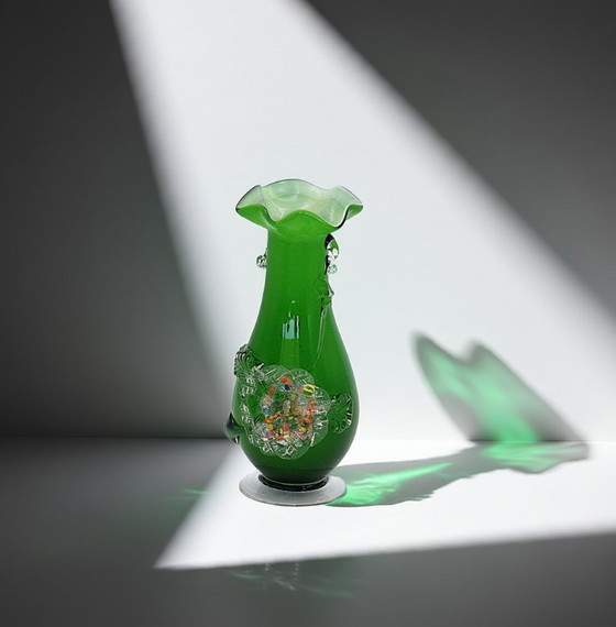 Vase Tivoli Murano vert vintage - Verre italien soufflé à la main | Objet d'art Mid Century